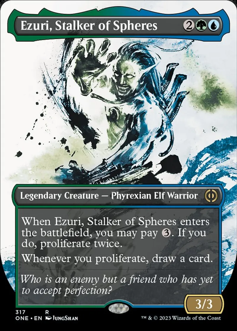 | Oracle Text | When Ezuri, Stalker of Spheres enters the battlefield, you may pay {3}. If you do, proliferate twice.