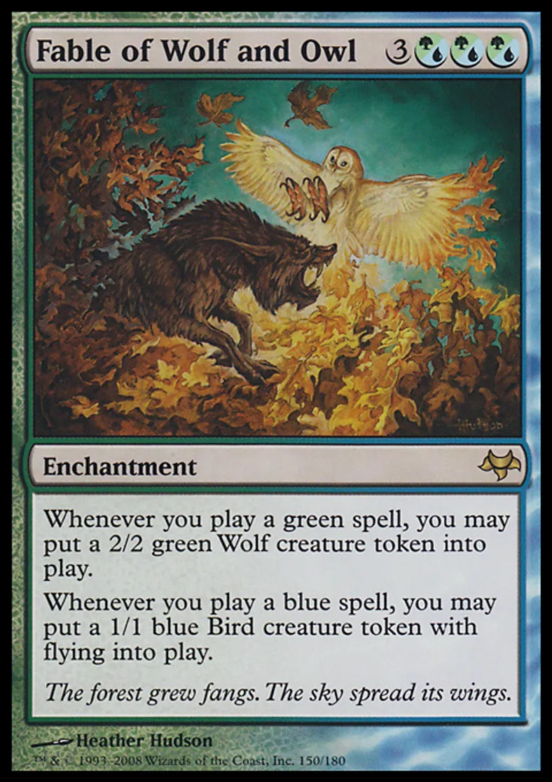 Magic: the Gathering (mtg) Rare Enchantment Fable of Wolf and Owl from Eventide (EVE) last updated 2026-02-24 14:47:06