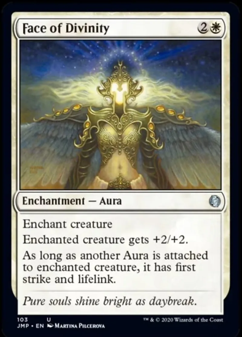 Magic: the Gathering (mtg) Uncommon Enchantment — Aura Face of Divinity from Jumpstart (jmp) last updated 2026-02-21 16:27:02