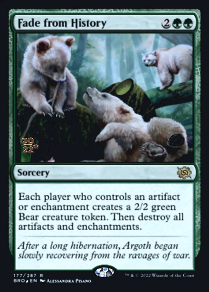 | Oracle Text | Each player who controls an artifact or enchantment creates a 2/2 green Bear creature token. Then destroy all artifacts and enchantments. | ||
