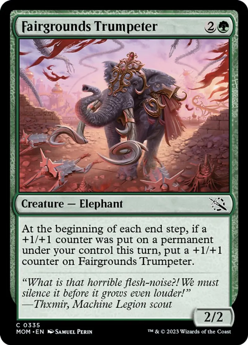 Magic: the Gathering (mtg) common Creature — Elephant Fairgrounds Trumpeter from March of the Machine (mom) last updated 2026-02-21 16:23:02