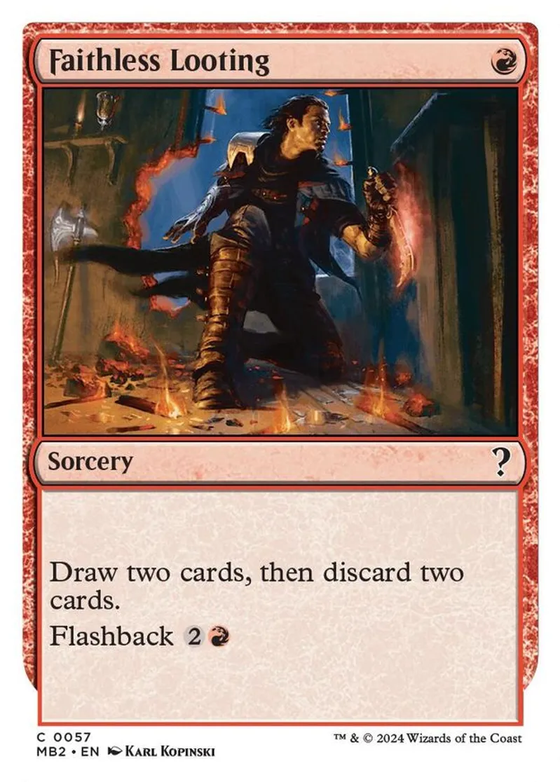 Faithless Looting (White Border) is a Special in the set Mystery Booster 2.