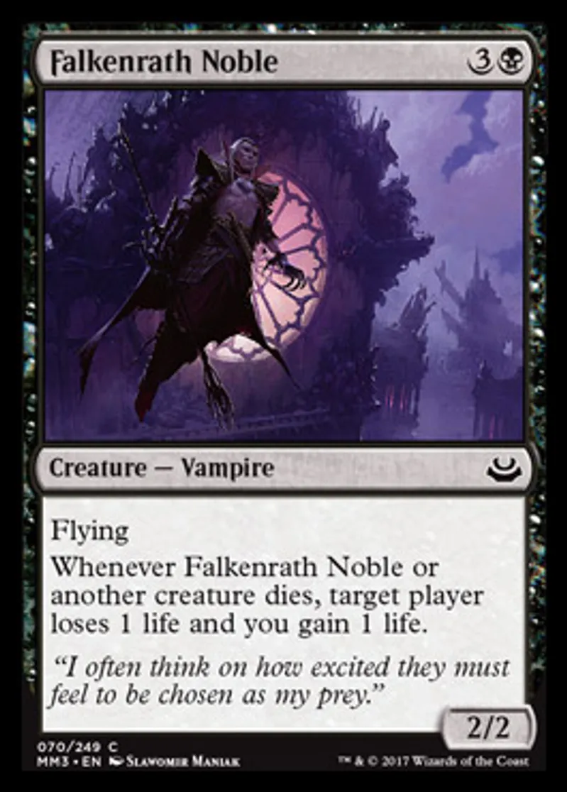 | Oracle Text | Flying Whenever Falkenrath Noble or another creature dies, target player loses 1 life and you gain 1 life. | ||