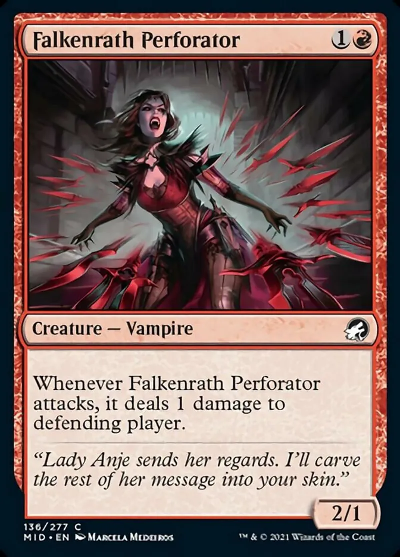 Magic: the Gathering (mtg) common Creature — Vampire Falkenrath Perforator from Innistrad: Midnight Hunt (mid) last updated 2026-02-21 16:41:32