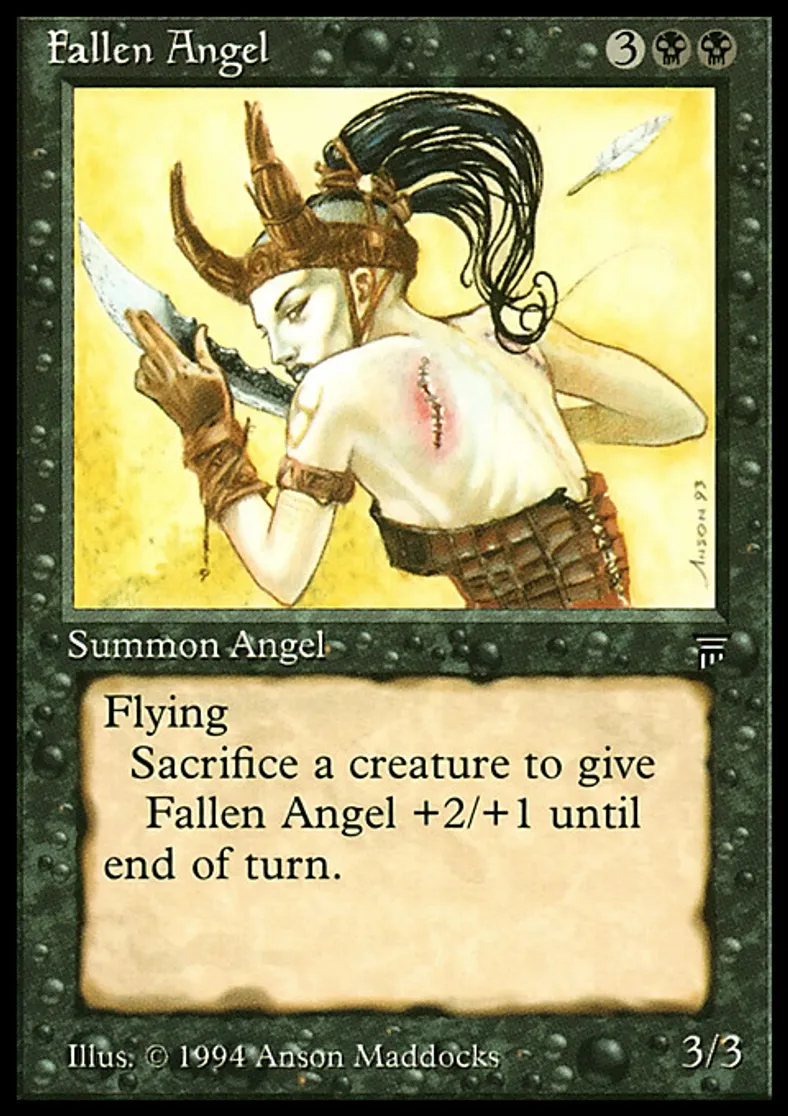 | Oracle Text | Flying Sacrifice a creature: Fallen Angel gets +2/+1 until end of turn. | ||