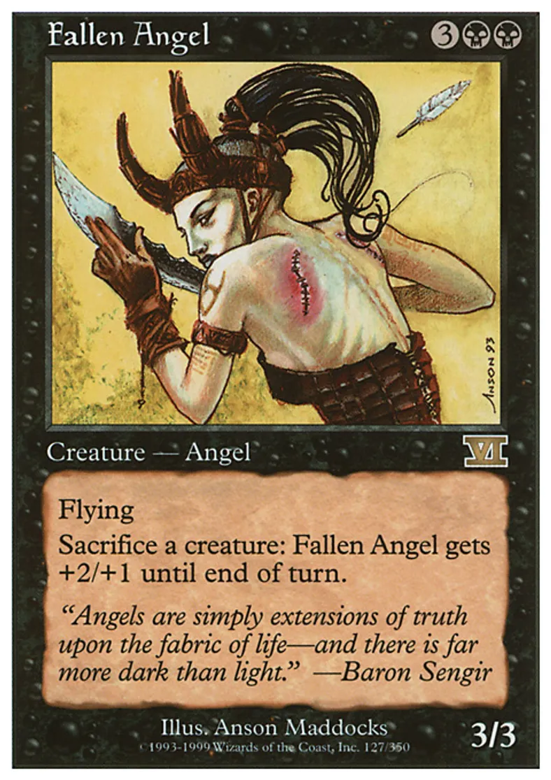 | Oracle Text | Flying Sacrifice a creature: Fallen Angel gets +2/+1 until end of turn. | ||