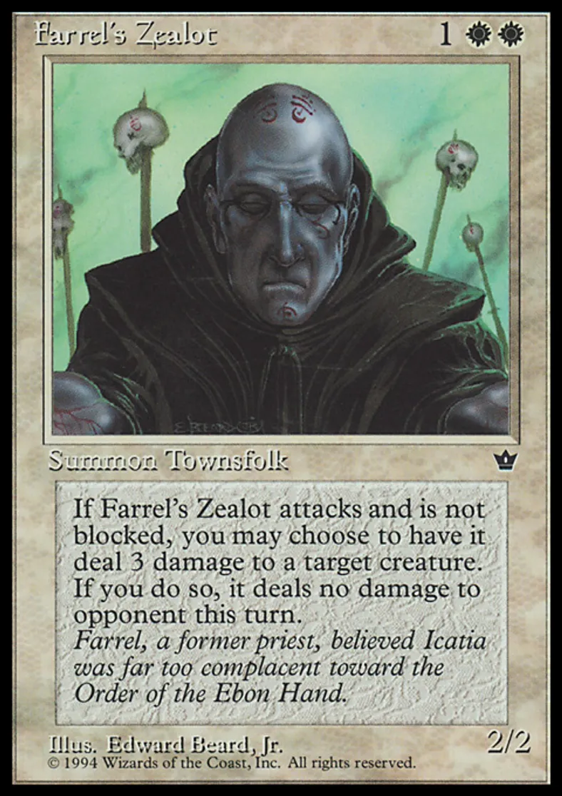 Magic: the Gathering (mtg) Common Creature - Human Farrel's Zealot from Fallen Empires (FEM) last updated 2026-02-21 17:29:02