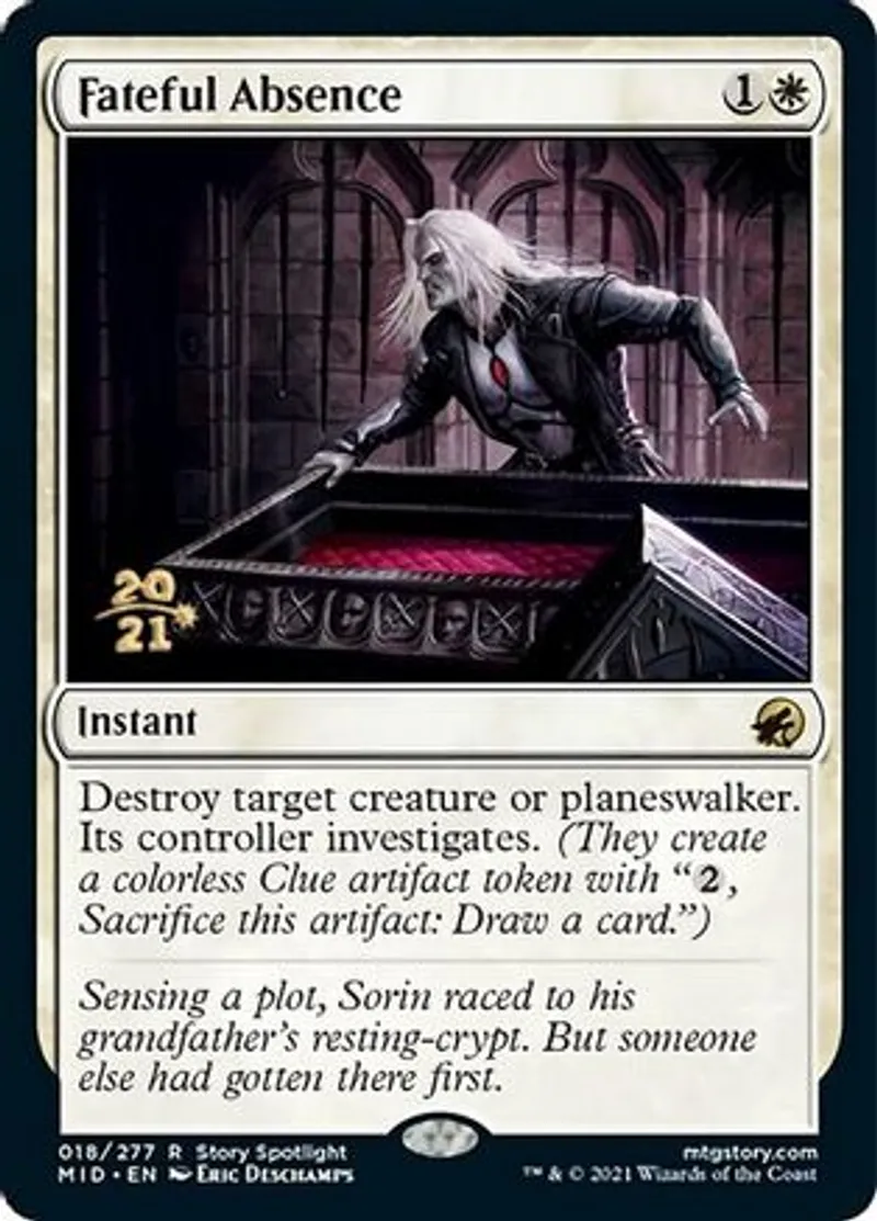 Magic: the Gathering (mtg) Rare Instant Fateful Absence from Prerelease Cards (pPRE) last updated 2026-02-24 15:35:32