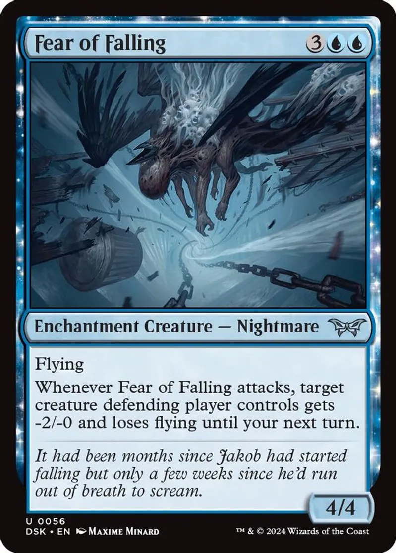 Magic: the Gathering (mtg) Uncommon enchantment creature — nightmare Fear of Falling from Duskmourn: House of Horror (DSK) last updated 2025-12-13 15:25:32