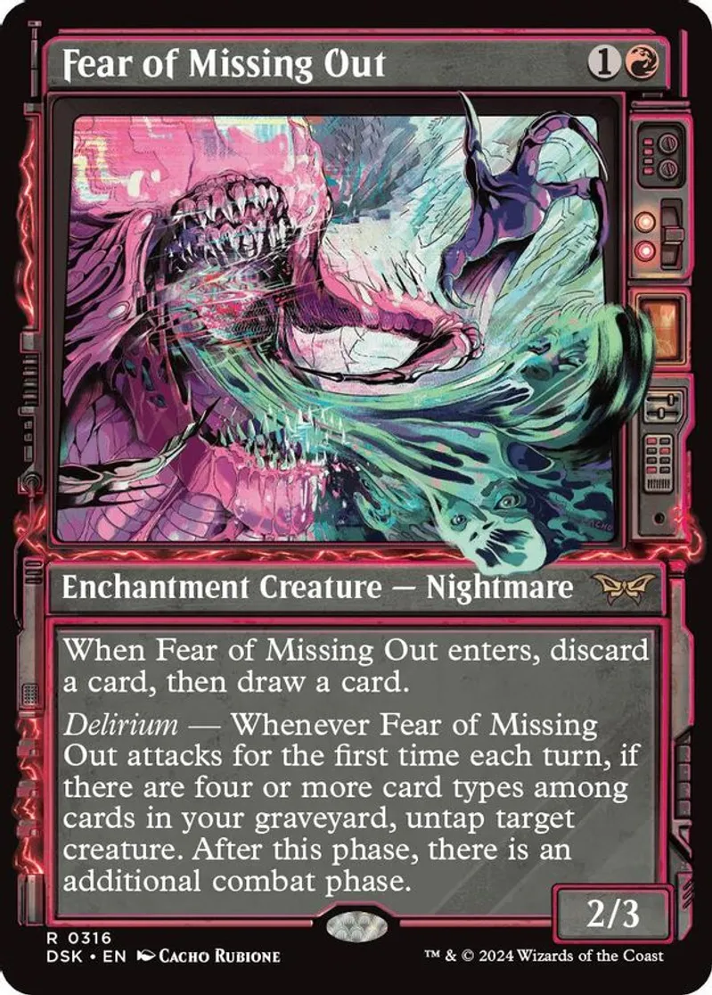| Oracle Text | when fear of missing out enters, discard a card, then draw a card.