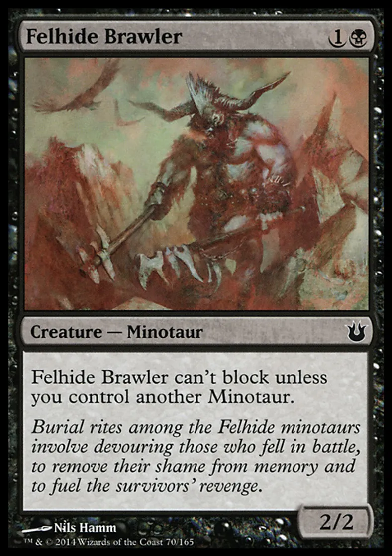 Magic: the Gathering (mtg) Common Creature - Minotaur Felhide Brawler from Born of the Gods (BNG) last updated 2026-02-21 17:16:32