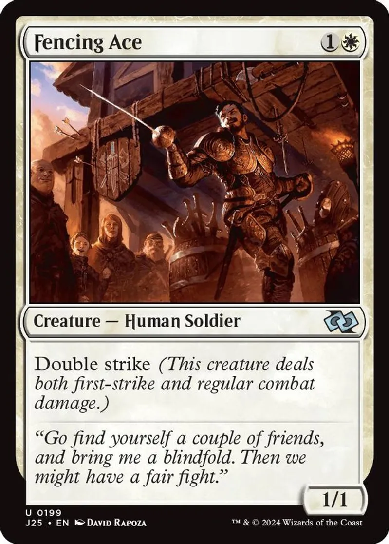 Magic: the Gathering (mtg) Uncommon creature — human soldier Fencing Ace from Foundations Jumpstart (J25) last updated 2026-02-21 15:33:32