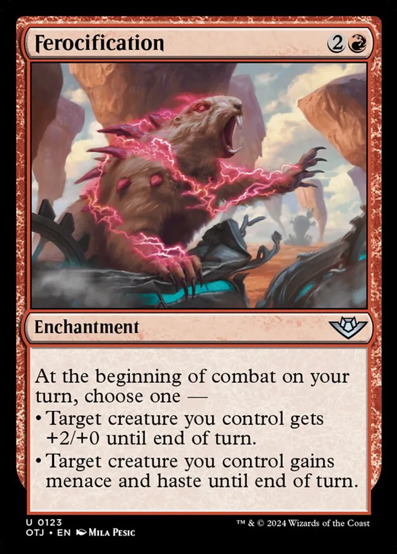 Ferocification is a uncommon in the set Outlaws of Thunder Junction.