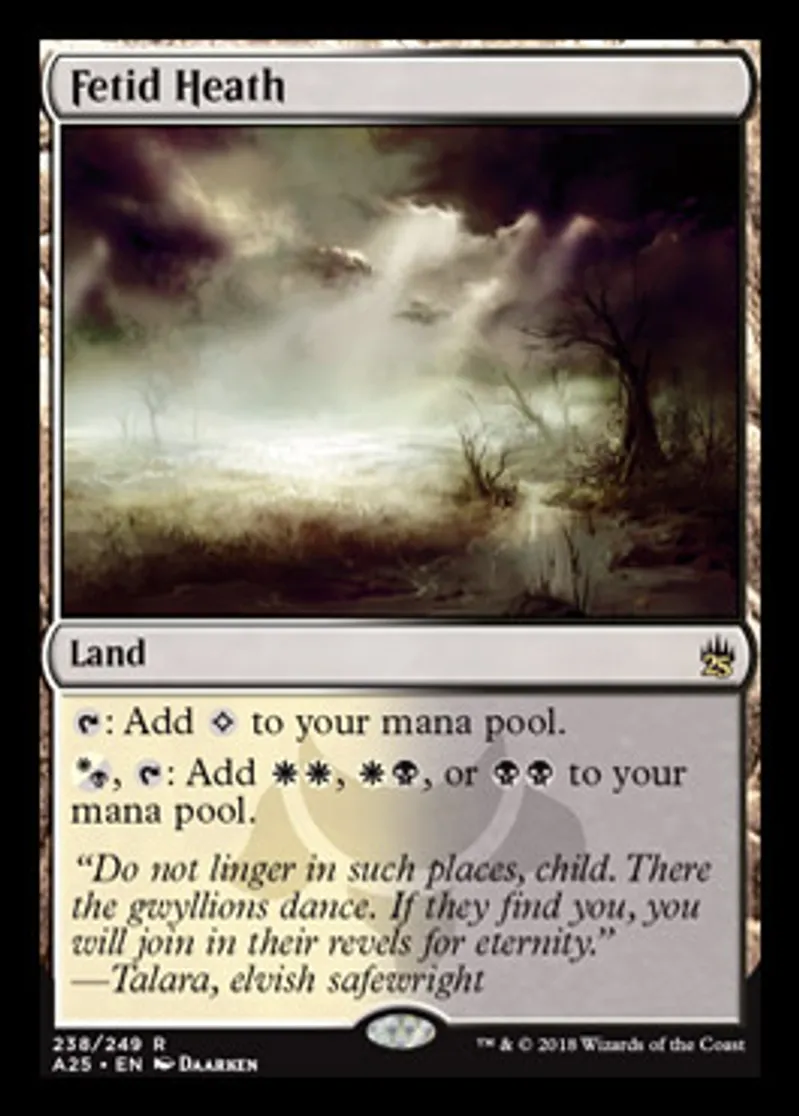 Magic: the Gathering (mtg) Rare Land Fetid Heath from Masters 25 (A25) last updated 2026-02-24 16:05:33