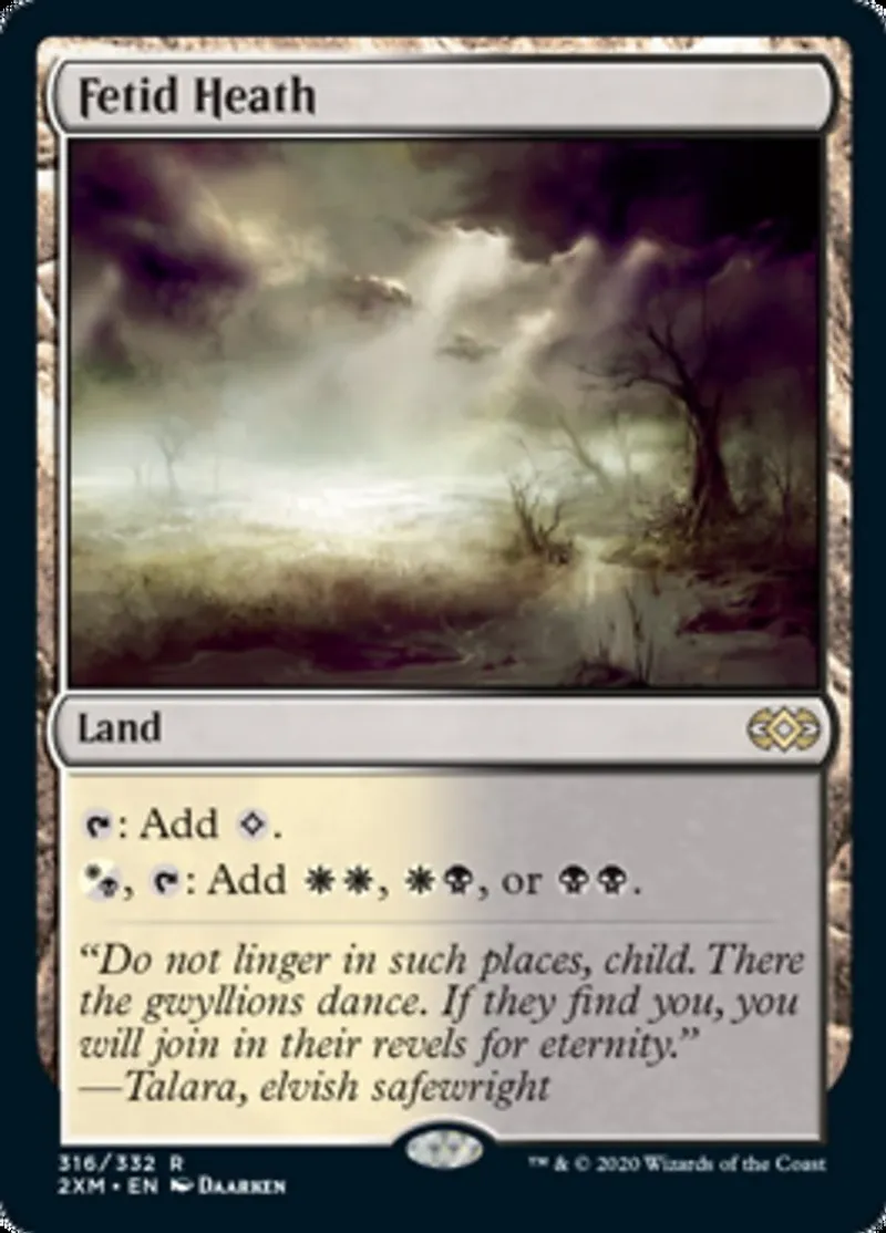Magic: the Gathering (mtg) rare Land Fetid Heath from Double Masters (2xm) last updated 2026-02-24 15:03:32