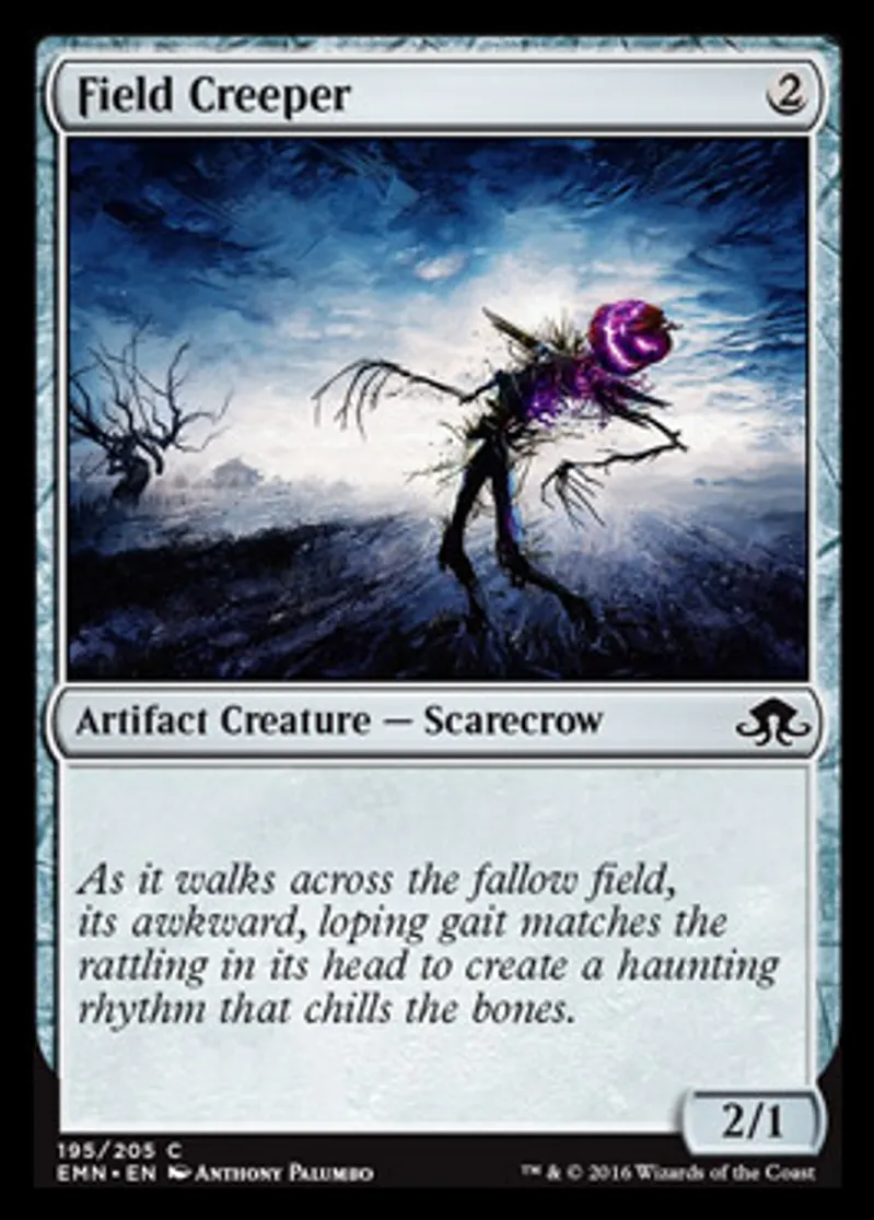Magic: the Gathering (mtg) Common Artifact Creature - Scarecrow Field Creeper from Eldritch Moon (EMN) last updated 2026-02-21 17:25:02