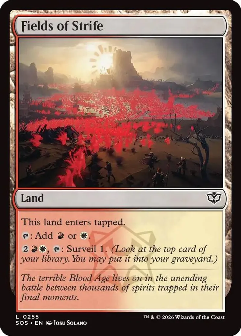 Magic: the Gathering (mtg) Basic Land land Fields of Strife from Secrets of Strixhaven (SOS) last updated 2026-04-16 23:12:04