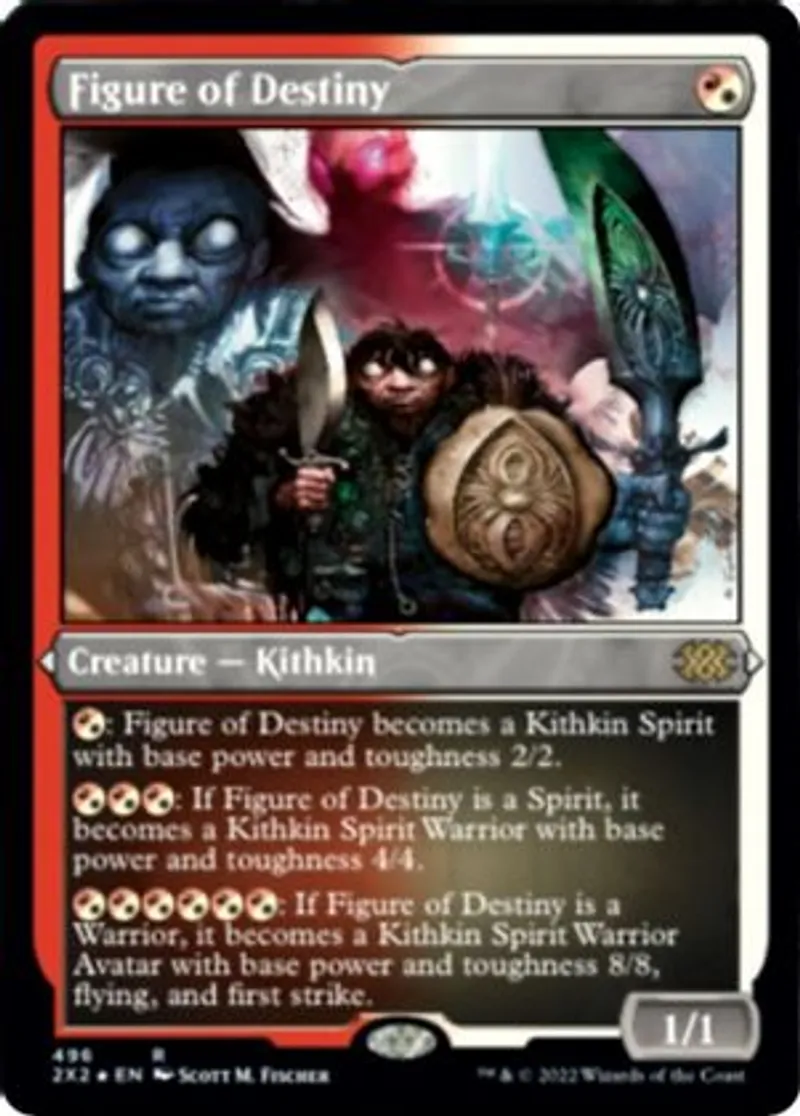 | Oracle Text | {{rw}}: Figure of Destiny becomes a Kithkin Spirit with base power and toughness 2/2.