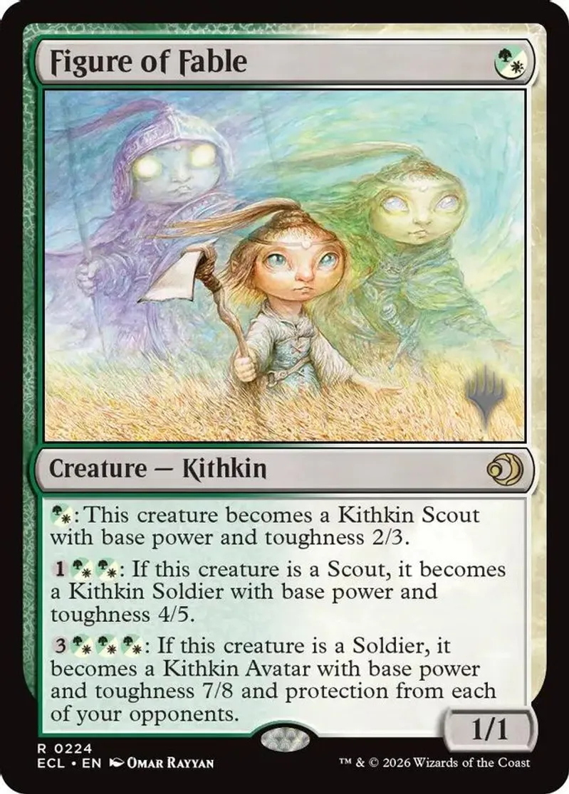 Magic: the Gathering (mtg) Rare creature — kithkin Figure of Fable from Promo Pack: Lorwyn Eclipsed (PPECL) last updated 2026-04-10 15:30:21