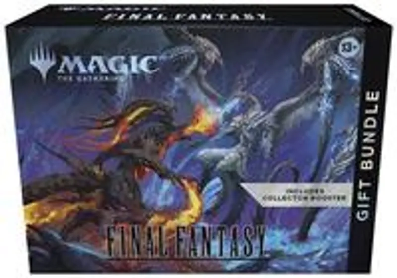 | Flavor Text | The entire FINAL FANTASY saga is here! Your players will step into the worlds of the beloved FINAL FANTASY RPG series' sixteen mainline games. They'll cast powerful spells, call upon classic summons, and even visit their favorite locations on the back of a Chocobo. Countless elements from the games are here for players to weave together their own stories. <br> The Gift Bundle is the ultimate fan kit, whether your players are boosting their own collection or giving the gift of Magic to another. With extended-art foil promos, a Collector Booster, and an exclusive Spindown life counter themed after the set, the Gift Bundle gives players a taste of the world of FINAL FANTASY. <br>Contents: <br>• 9 Magic: The Gathering—FINAL FANTASY Play Boosters <br>• 1 Magic: The Gathering—FINAL FANTASY Collector Booster <br>• 2 Traditional Foil Extended-Art cards <br>• 16 Traditional Foil Basic Land cards <br>• 16 nonfoil Basic Land cards <br>• 1 oversized Spindown life counter <br>• 1 card storage box <br>• 2 reference cards <br>• Each Play Booster contains: <br>• 14 Magic: The Gathering cards <br>• 1-4 cards of rarity Rare of higher <br>• 3-6 Uncommon cards <br>• 6-9 Common cards <br>• 1 Land card (Traditional Foil Land replaces a Land in 20% of boosters) <br>• 1 card of any rarity is Traditional Foil; Foil Borderless Mythic Rare in 1% of boosters <br>• Each Collector Booster contains: <br>• 8-12 cards are Traditional Foil; 0-3 of these cards may be Surge Foil <br>• 5-6 cards rarity Rare or higher <br>• 3-6 Uncommon cards <br>• 3-5 Common cards <br>• 1 Land card | ||