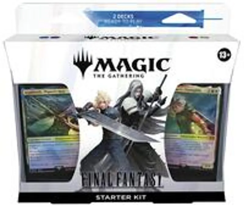 | Flavor Text | The entire FINAL FANTASY saga is here! Your players will step into the worlds of the beloved FINAL FANTASY RPG series' sixteen mainline games. They'll cast powerful spells, call upon classic summons, and even visit their favorite locations on the back of a Chocobo. Countless elements from the games are here for players to weave together their own stories. <br> For players who want to play Cloud, Planet's Champion or Sephiroth, Planet's Heir decks, direct them to the Starter Kit! With two ready-to-play, 60-card decks, the Starter Kit helps guide new players through their first game of Magic while allowing them to explore characters and moments from various FINAL FANTASY games. <br>Contents: <br>• Two 60-card, ready-to-play Magic decks <br>• 2 Traditional Foil Mythic Rare cards (1 per deck) <br>• 2 Magic: The Gathering Arena code cards (1 per deck, only available in select regions) <br>• 2 deck boxes (1 per deck) <br>• 2 reference cards (1 per deck) <br>• 1 Play Guide booklet | ||