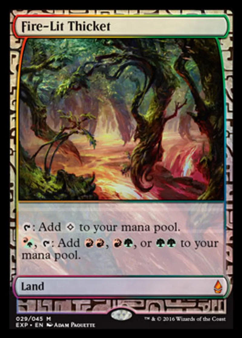 Fire-Lit Thicket is a Mythic Rare in the set Zendikar Expeditions.