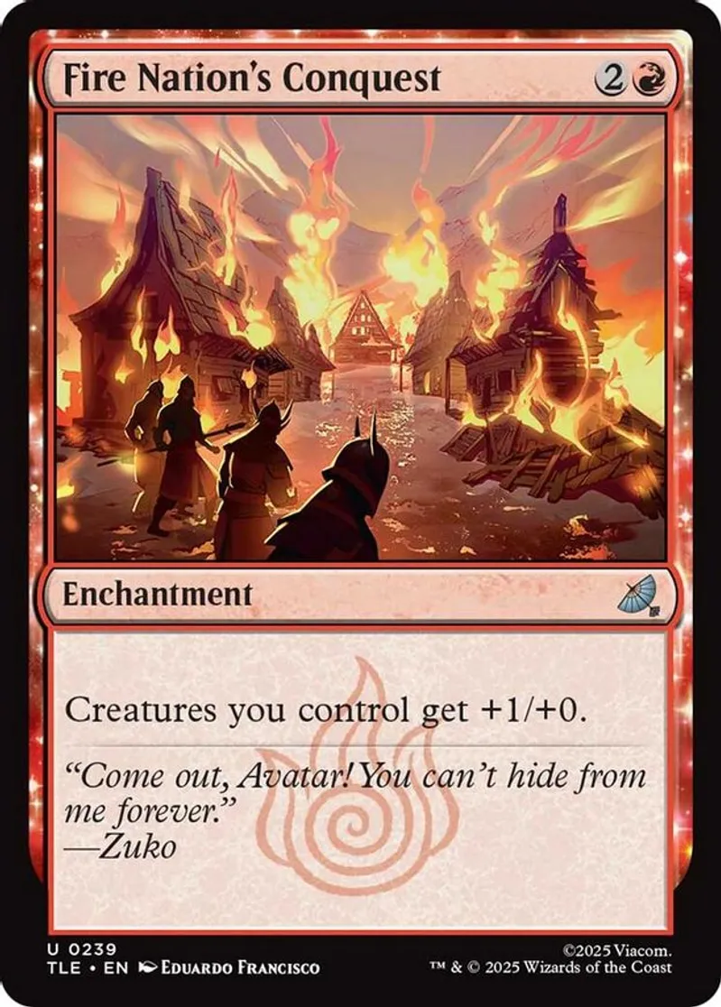 Magic: the Gathering (mtg) Common enchantment Fire Nation's Conquest from Avatar: The Last Airbender: Eternal-Legal (TLE) last updated 2026-01-19 14:23:01