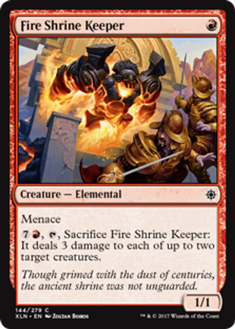 Magic: the Gathering (mtg) Common Creature - Elemental Fire Shrine Keeper from Ixalan (XLN) last updated 2026-02-21 16:48:04