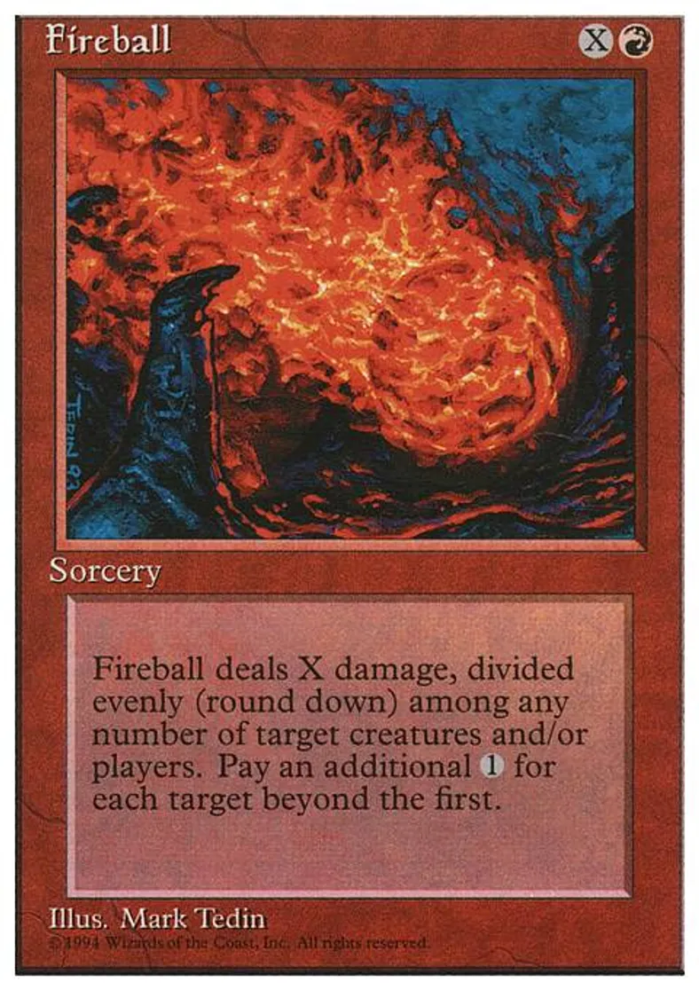 | Oracle Text | Fireball deals X damage divided evenly, rounded down, among any number of target creatures and/or players.