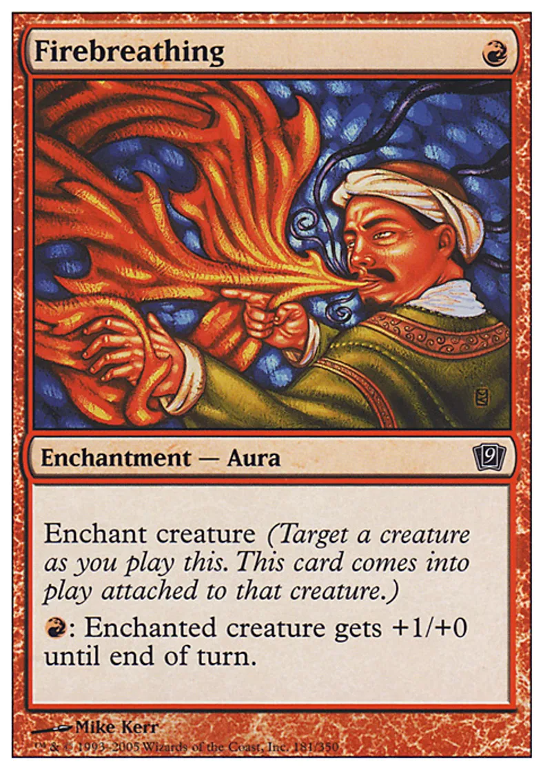 Magic: the Gathering (mtg) Common Enchantment - Aura Firebreathing from Ninth Edition (9ED) last updated 2026-02-21 17:41:36