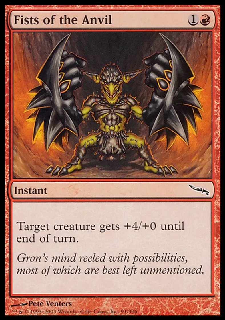 Magic: the Gathering (mtg) Common Instant Fists of the Anvil from Mirrodin (MRD) last updated 2026-02-21 17:40:07