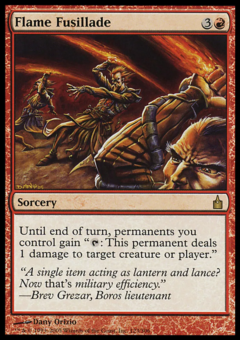 Magic: the Gathering (mtg) Rare Sorcery Flame Fusillade from Ravnica: City of Guilds (RAV) last updated 2026-02-25 15:53:33