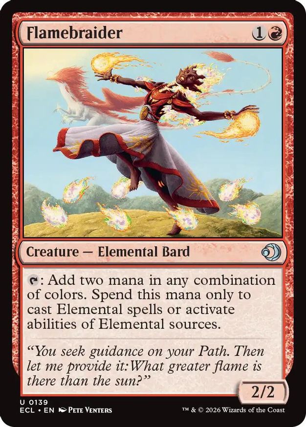 Magic: the Gathering (mtg) Uncommon sorcery Flamebraider from Lorwyn Eclipsed (ECL) last updated 2026-01-11 16:17:32
