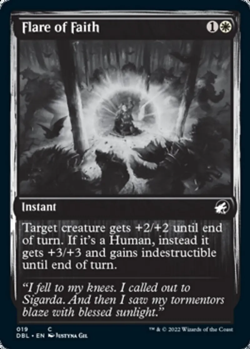 Flare of Faith is a common in the set Innistrad: Double Feature.