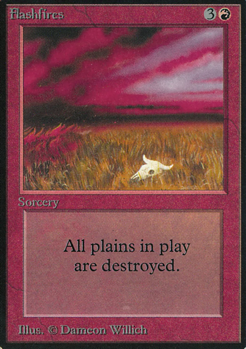 Magic: the Gathering (mtg) Uncommon Sorcery Flashfires from Limited Edition Alpha (LEA) last updated 2026-02-07 14:42:33