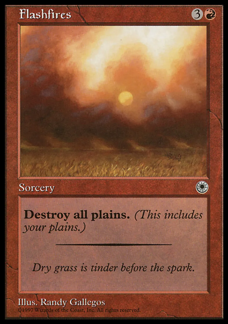 Magic: the Gathering (mtg) Uncommon Sorcery Flashfires from Portal (POR) last updated 2026-02-07 17:31:02
