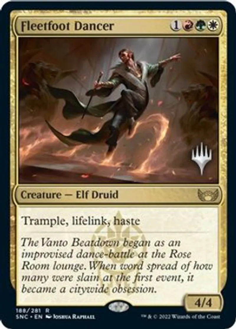 Magic: the Gathering (mtg) Rare Creature — Elf Druid Fleetfoot Dancer from Promo Pack: Streets of New Capenna (PSNC) last updated 2026-02-21 16:06:36