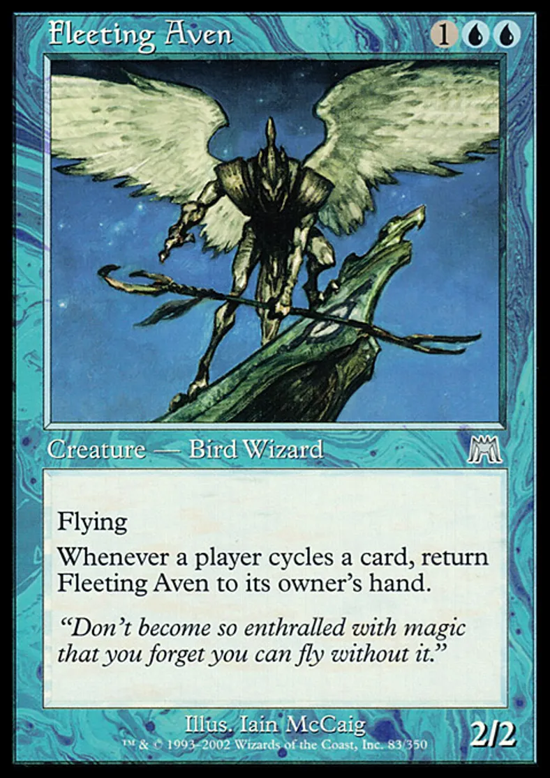 | Oracle Text | Flying Whenever a player cycles a card, return Fleeting Aven to its owner's hand. | ||