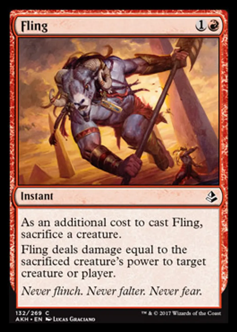 Magic: the Gathering (mtg) Common Instant Fling from Amonkhet (AKH) last updated 2026-02-14 16:45:33