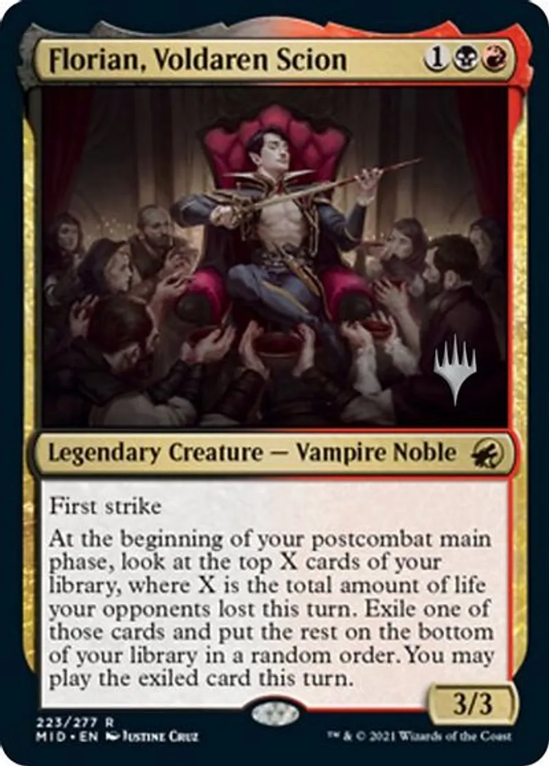 Florian, Voldaren Scion is a Rare in the set Promo Pack: Innistrad: Midnight Hunt.