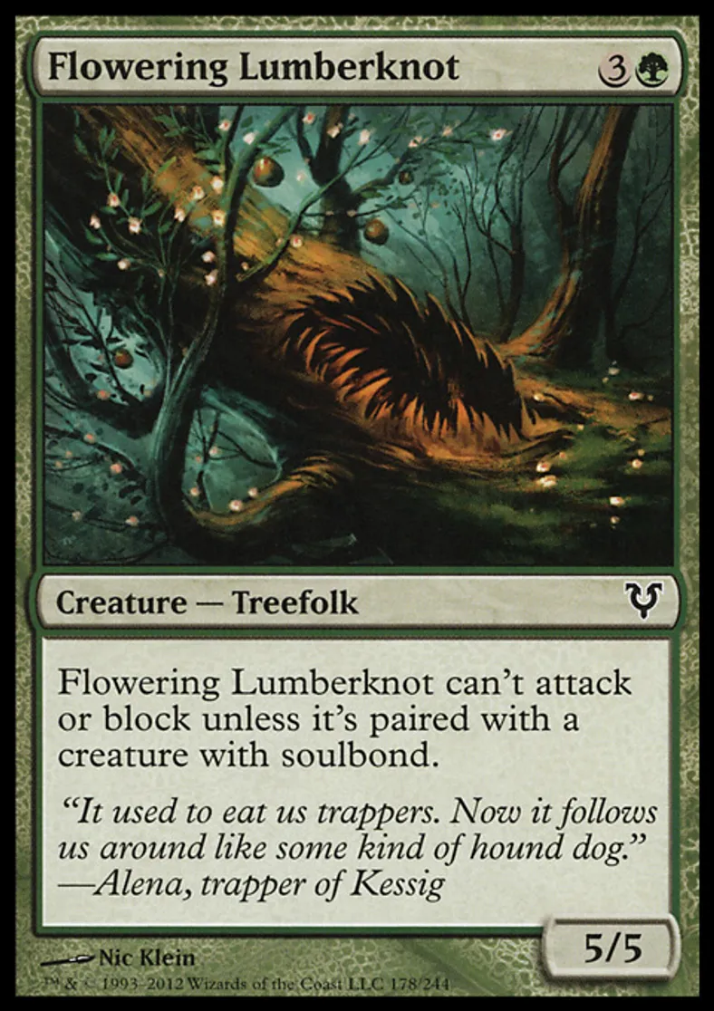 | Oracle Text | Flowering Lumberknot can't attack or block unless it's paired with a creature with soulbond. | ||