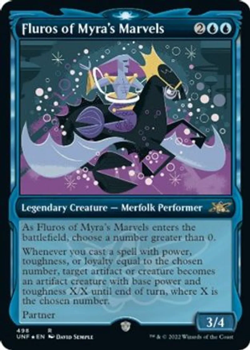 Magic: the Gathering (mtg) Rare Legendary Creature — Merfolk Performer Fluros of Myra's Marvels from Unfinity (UNF) last updated 2026-02-21 16:13:01