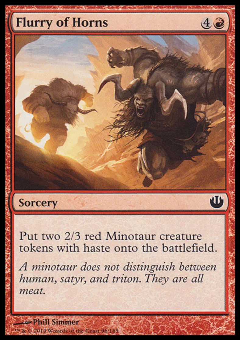 Magic: the Gathering (mtg) Common Sorcery Flurry of Horns from Journey into Nyx (JOU) last updated 2026-02-21 17:16:32
