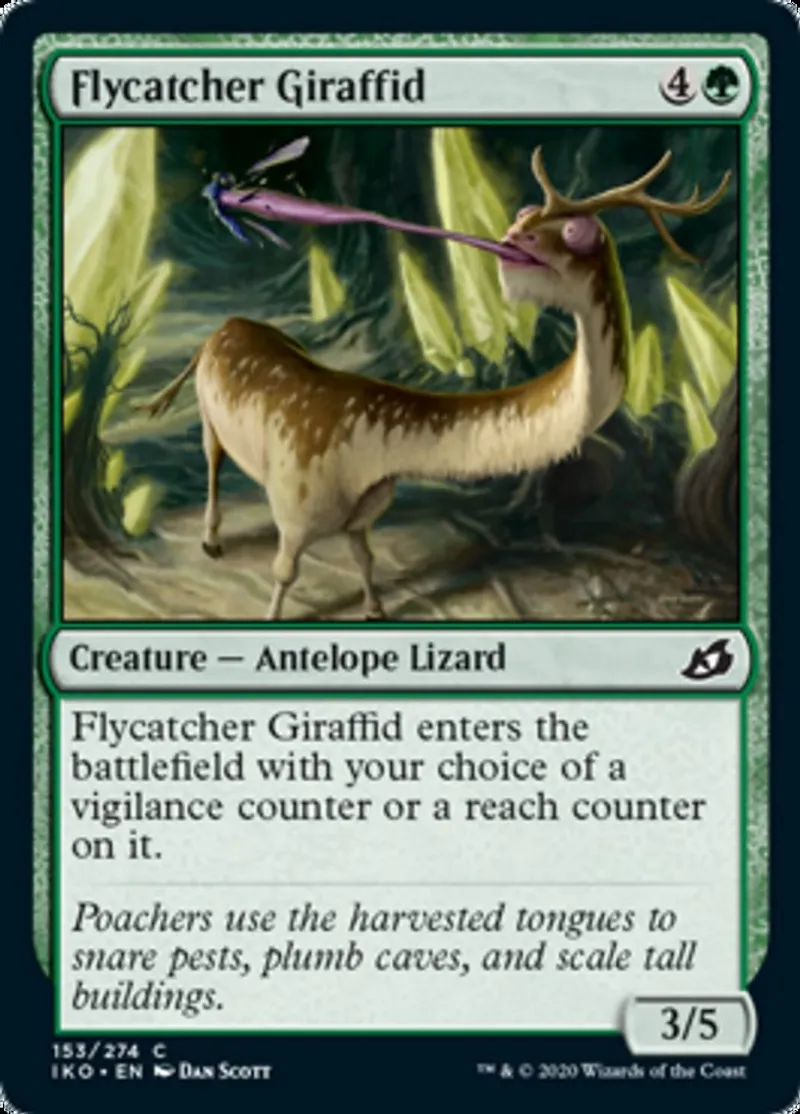 | Oracle Text | Flycatcher Giraffid enters the battlefield with your choice of a vigilance counter or a reach counter on it. | ||