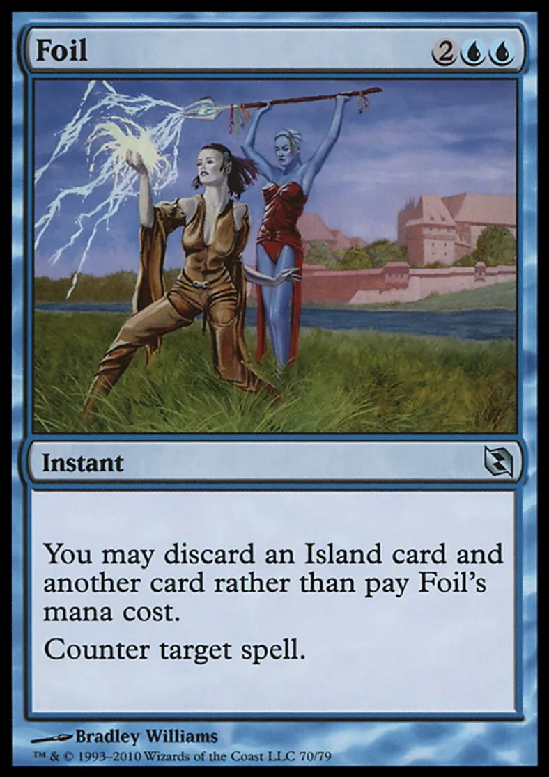 | Oracle Text | You may discard an Island card and another card rather than pay Foil's mana cost. Counter target spell. | ||