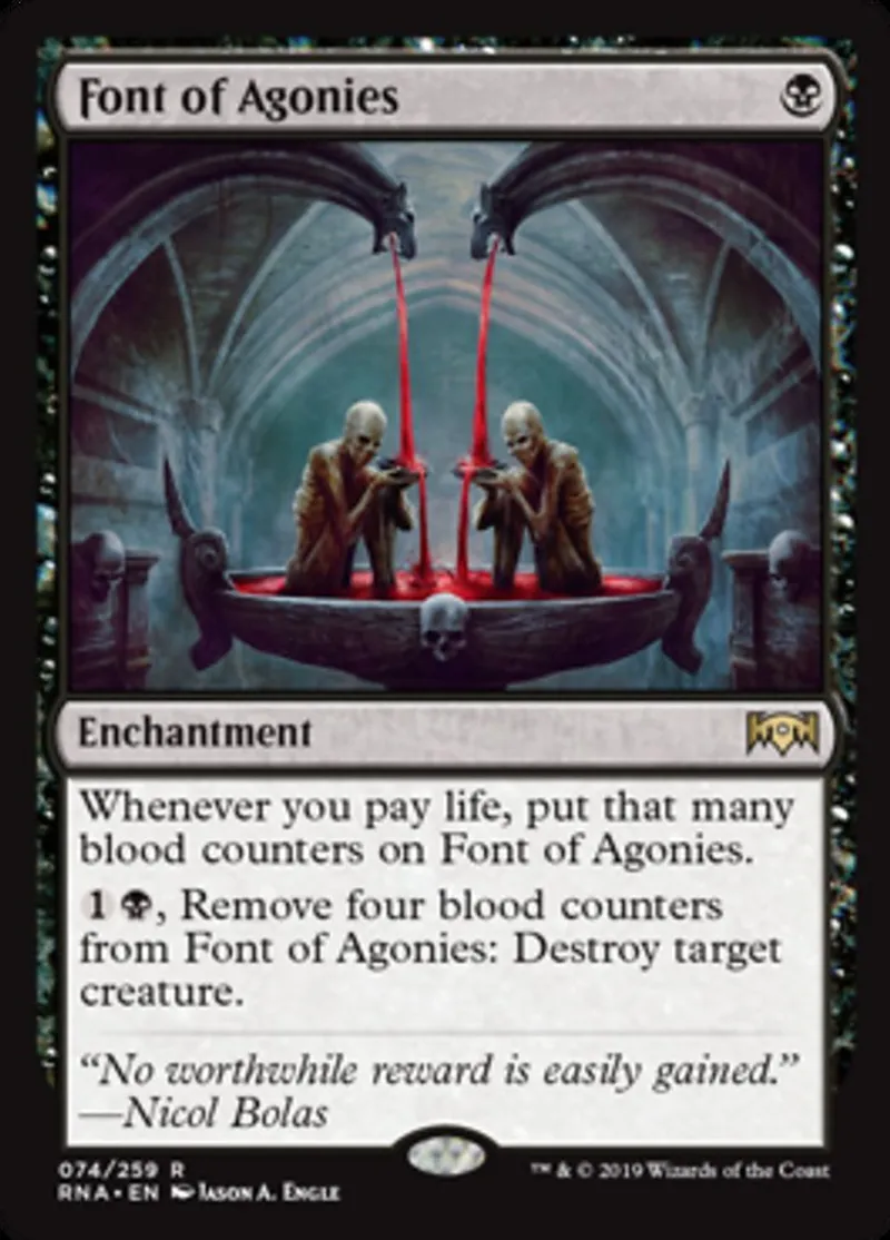 Magic: the Gathering (mtg) Rare Enchantment Font of Agonies from Ravnica Allegiance (RNA) last updated 2026-02-21 16:56:02