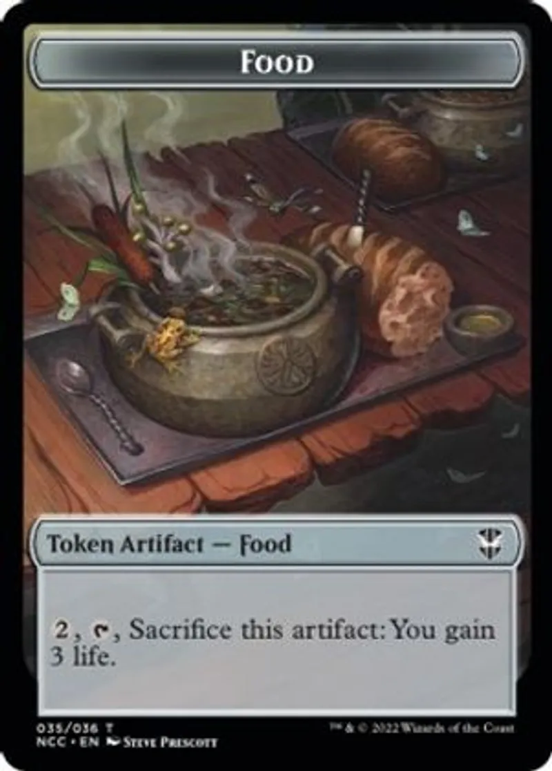 Magic: the Gathering (mtg) Token Token Artifact — Food Food // Citizen Double-sided Token from Streets of New Capenna Commander Tokens (TNCC) last updated 2026-02-21 16:06:02