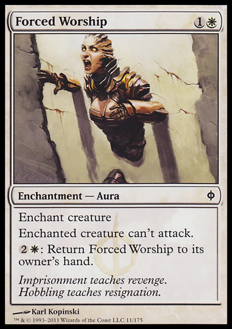 Magic: the Gathering (mtg) Common Enchantment - Aura Forced Worship from New Phyrexia (NPH) last updated 2026-02-21 17:07:36