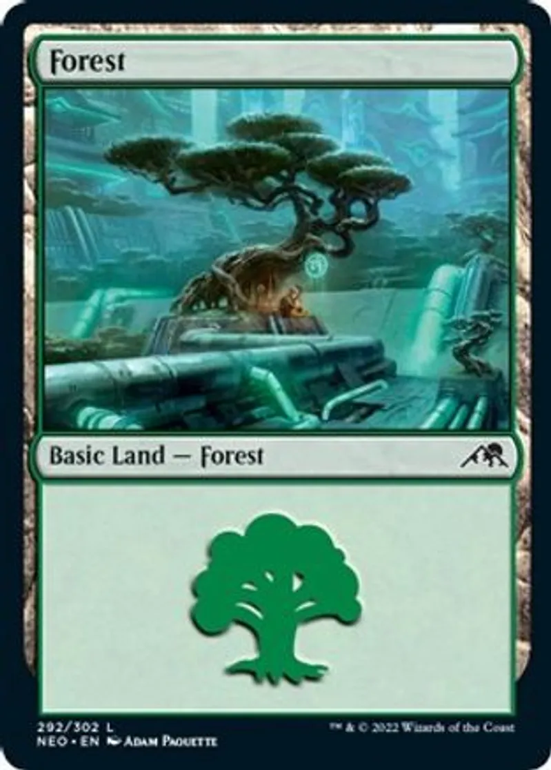 Forest (292) is a Basic Land in the set Kamigawa: Neon Dynasty.