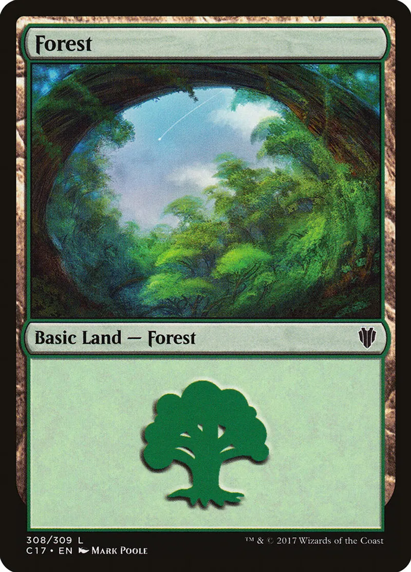 Magic: the Gathering (mtg) Basic Land Basic Land — Forest Forest from Commander 2017 (C17) last updated 2026-02-24 16:07:32